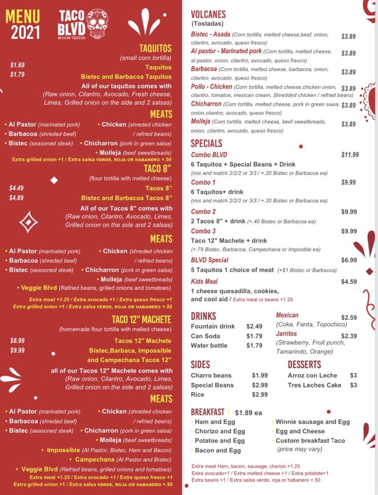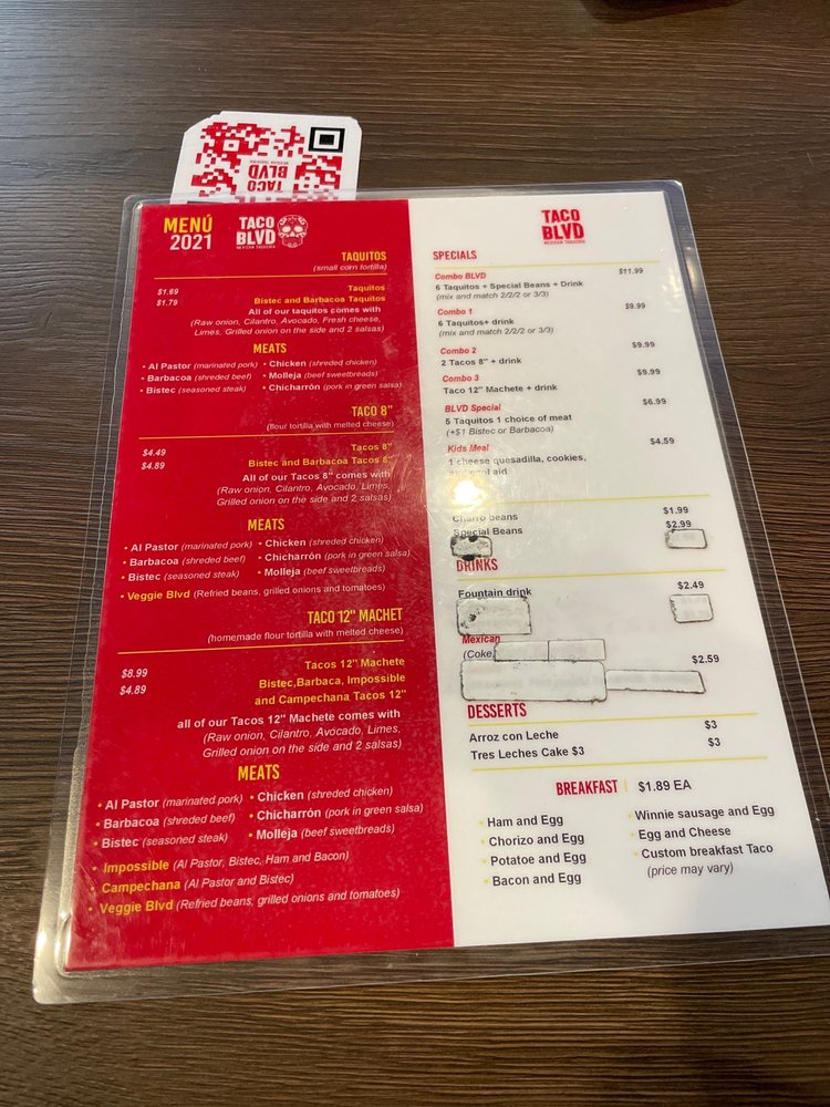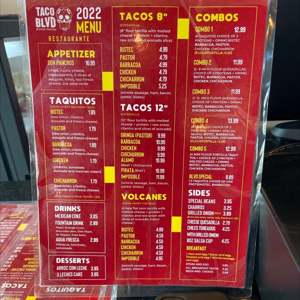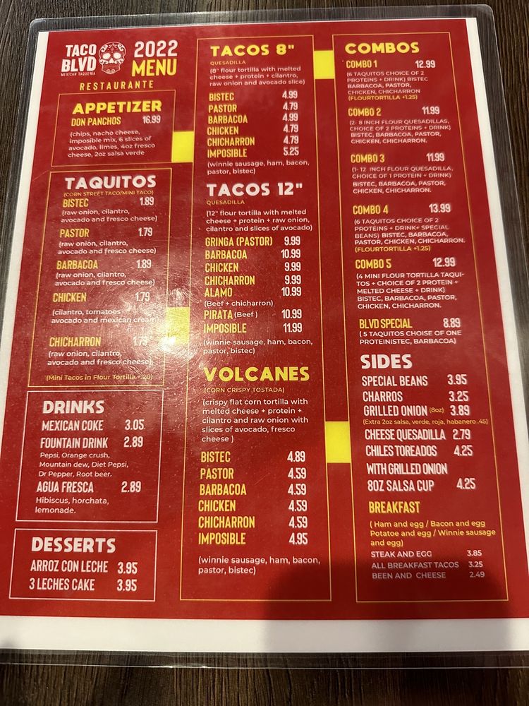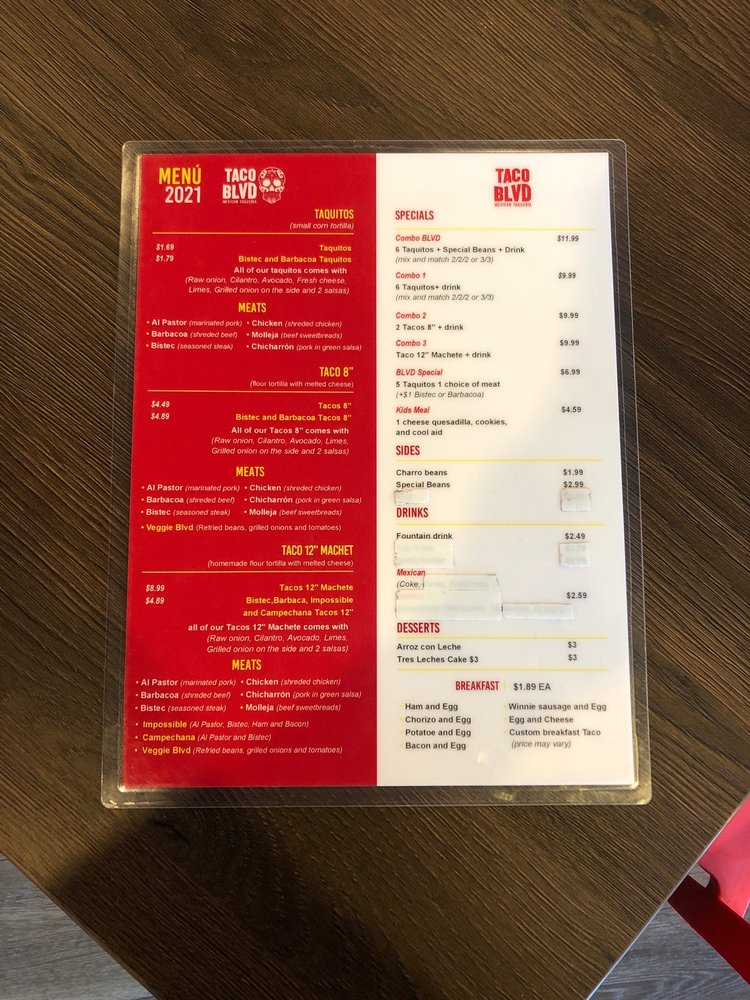 Taco Blvd Menu (Update 2025)